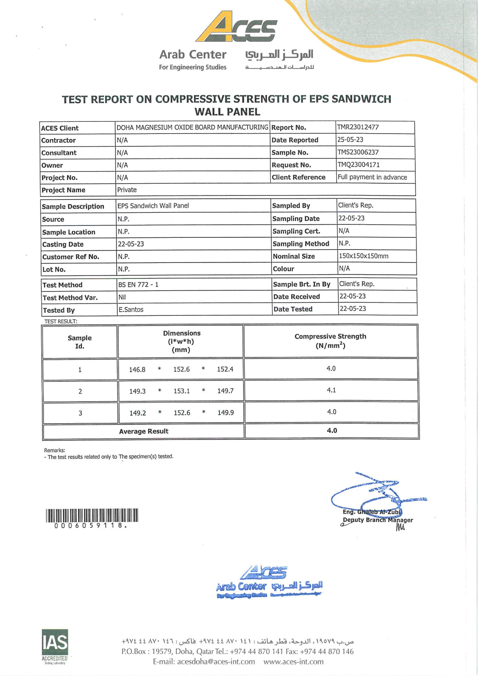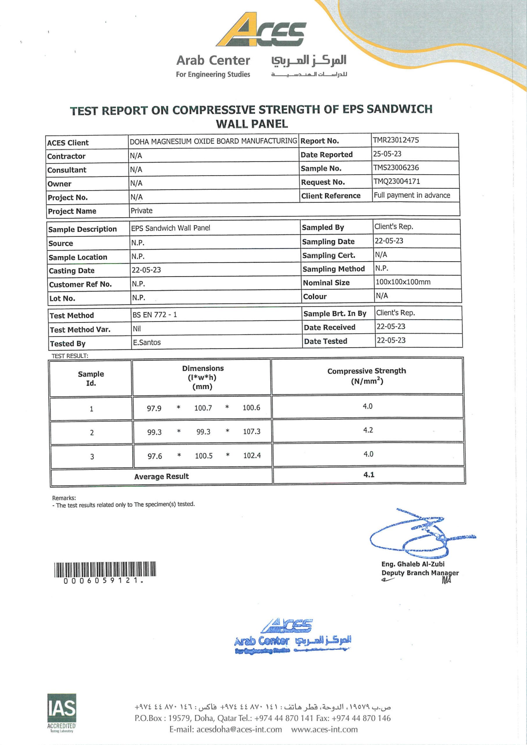Test Report on Compressive strength of EPS Sandwich Wall Panels
